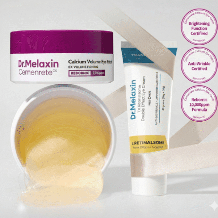 Een innovatieve hydrogel eye patch die zich nauwsluitend aan de huid hecht en zichtbare tekenen van veroudering met precisie aanpakt. De Cemenrete Calcium Volume Eye Patch is speciaal ontwikkeld om wallen onder de ogen te verminderen, voorhoofdslijnen te verzachten en neus-lippenplooien glad te strijken – voor een egalere, jeugdige uitstraling over het hele gezicht. De patch bevat krachtige actieve stoffen die de huid voller maken en haar natuurlijke elasticiteit ondersteunen.