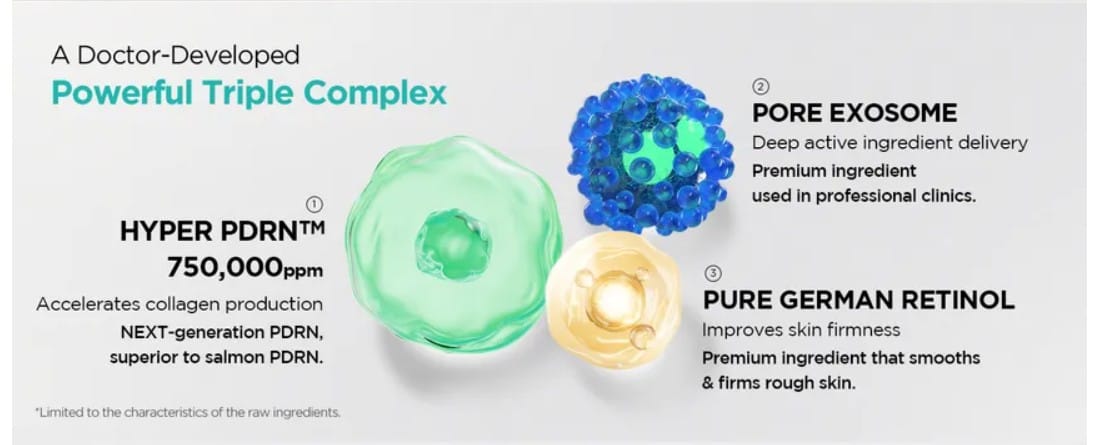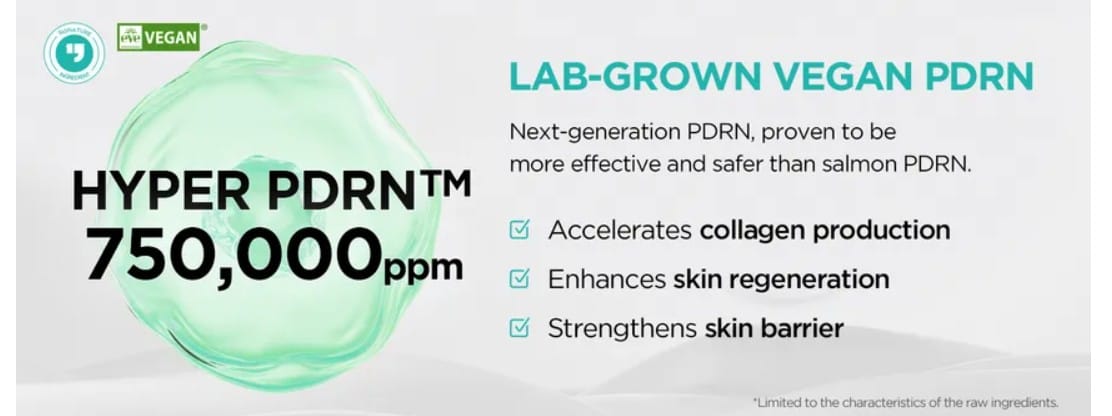Hyper PDRN™ (750.000 ppm): stimuleert collageen en huidregeneratie voor porie-verbetering en veerkracht.